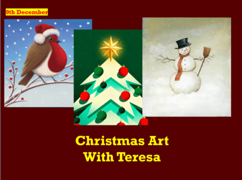 With the expert guidance of Teresa, we’ll be flexing our artistic muscles again to make collaged Xmas cards and origami.